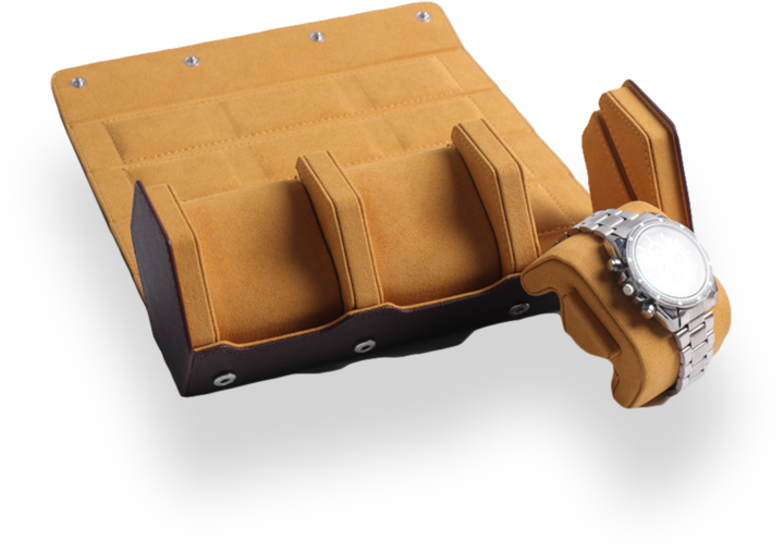 The leather and Time watch roll has an extra layer added to cover walls to make it more durable and not flimsy like other watch rolls. This provides addtional protection for your watch.