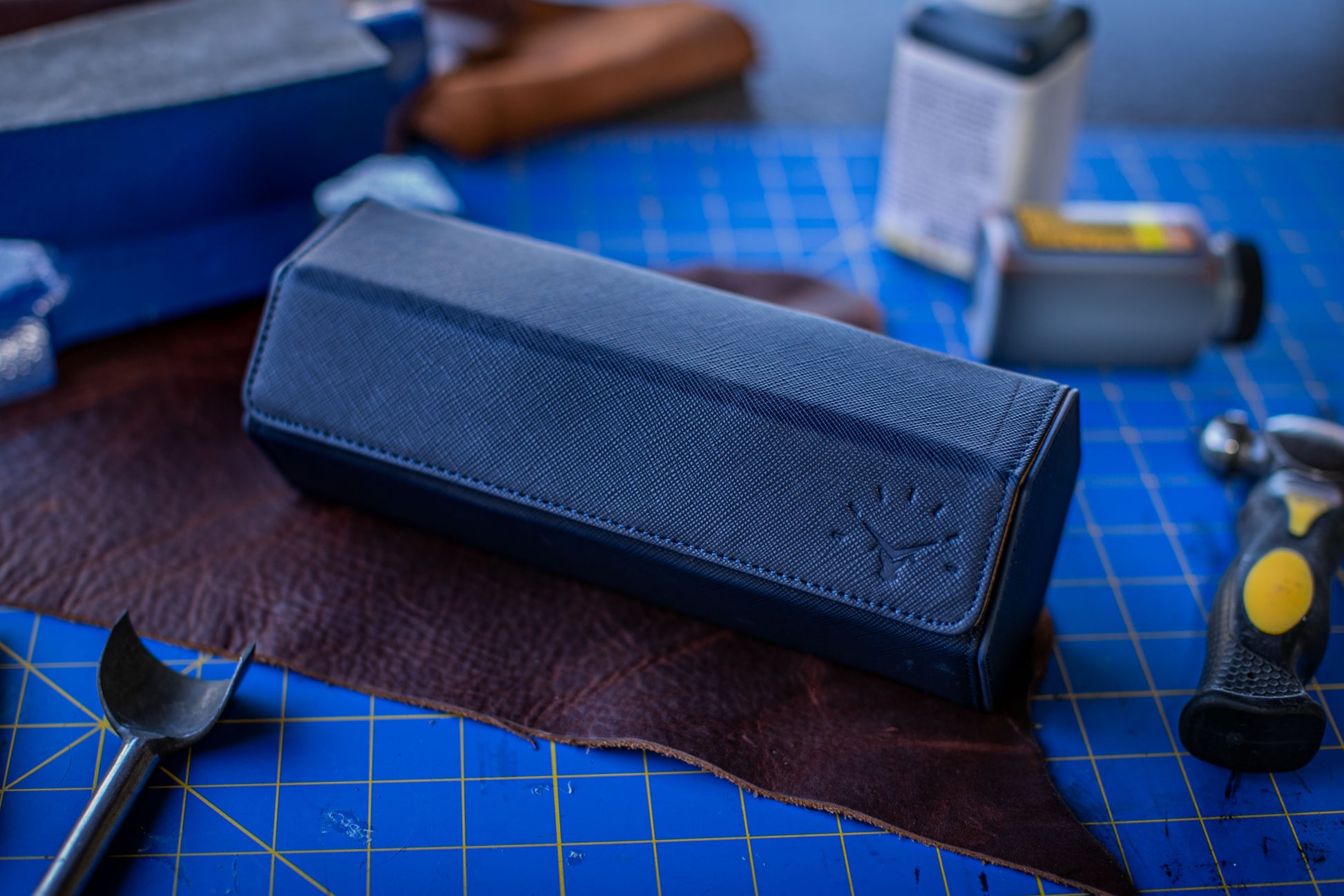 About Our Blue Saffiano Leather Hexagon Watch Roll