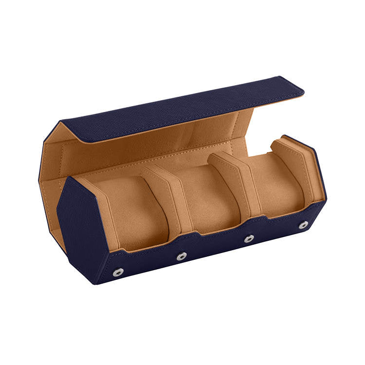 Blue Saffiano Hexagon Watch Roll - Three Watches