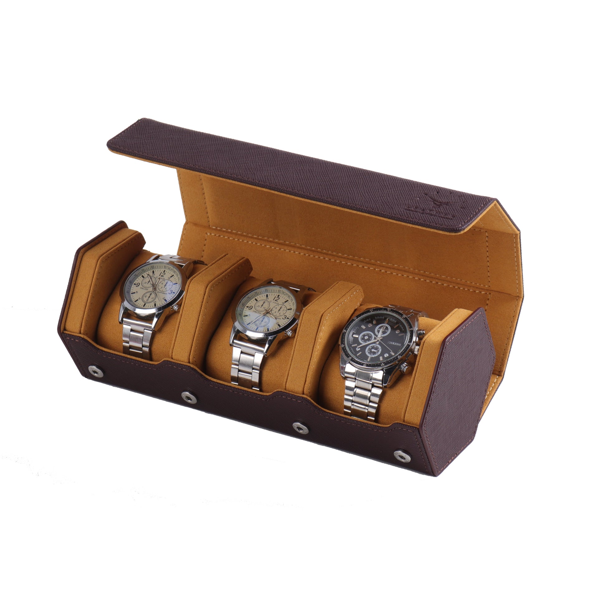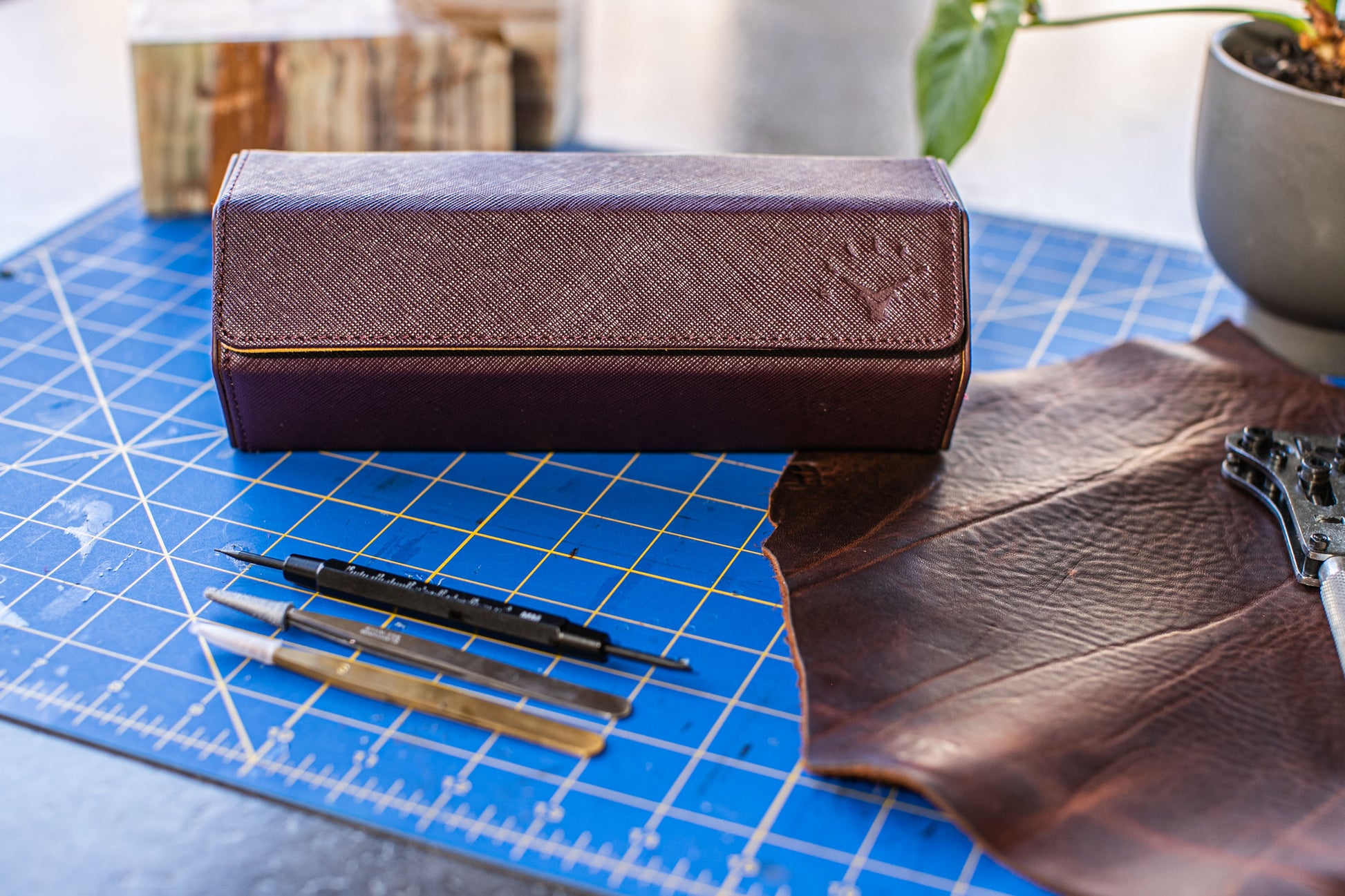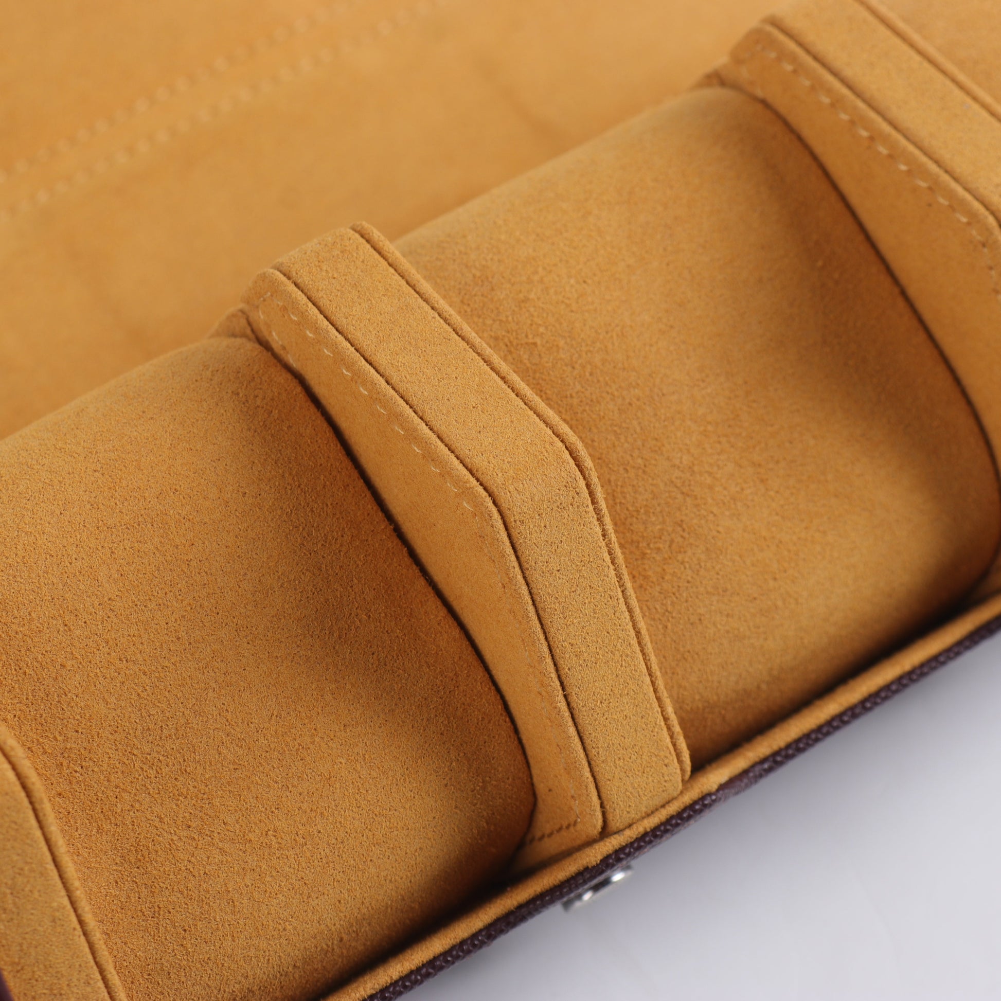 The leather and Time watch roll has an extra layer added to cover walls to make it more durable and not flimsy like other watch rolls. This provides addtional protection for your watch.